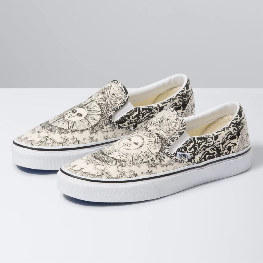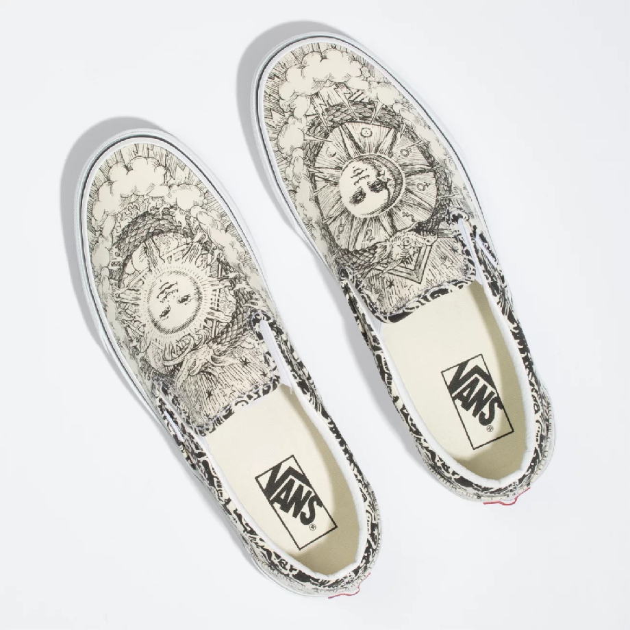 Ở các mẫu giày trong bộ sưu tập Vans OUROBOROS, hình ảnh con rắn lớn tự cắn đuôi của mình đã tạo ra một vòng tròn hài hòa, tượng trưng cho sự vĩnh hằng. Đây là biểu tượng được sử dụng trong rất nhiều nền văn hóa cổ xưa trên nhiều vùng đất từ Bắc Âu đến Ai Cập, Ấn Độ hay Trung Hoa… Cùng với đó, họa tiết Mặt trời trong thiết kế được đặt ngay bên trong vòng tròn vô cực OUROBOROS càng khiến hình ảnh trở nên huyền ảo, mang nhiều giá trị về văn hóa.
