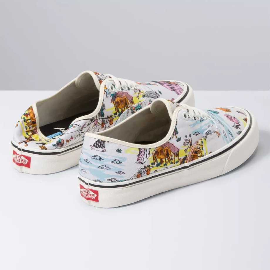Họa tiết của Kide mô tả cuộc khám phá sâu sắc về mối quan hệ giữa con người với văn hóa địa phương và lịch sử của chính họ trong Vans x Kide. Hình ảnh đơn giản, dễ hiểu và gần gũi, gam màu tươi sáng là điểm nhấn dễ thấy nhất trong BST lần này từ nhà Vans.