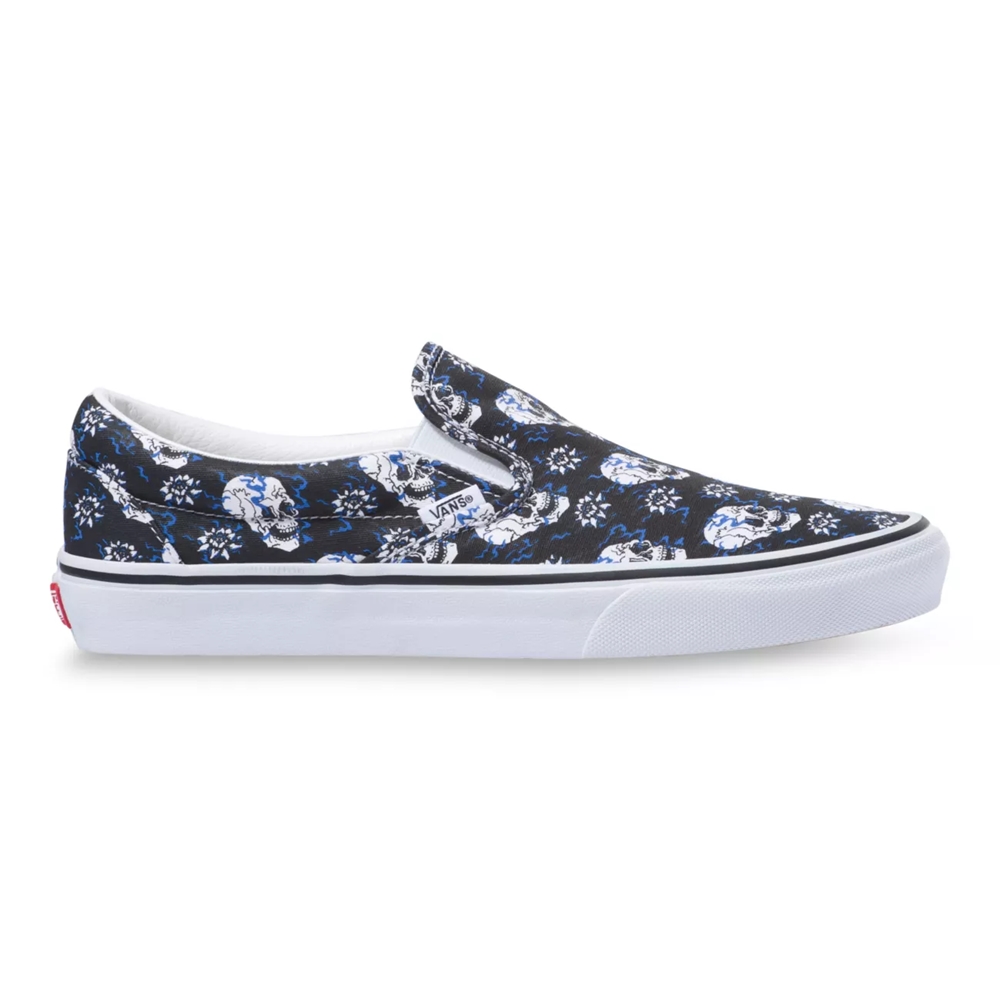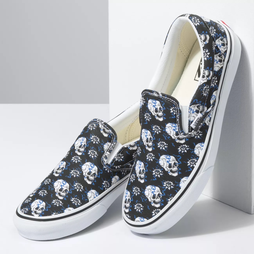 Đối với VANS SLIP-ON FLASH SKULLS, những chiếc đầu lâu được điểm mạnh bởi những làn khói xanh mờ ảo, xen kẽ đó là những bông hoa trắng tạo nên một hoạ tiết không bị nhàm chán. Sự tiện lợi và linh hoạt của VANS SLIP-ON cũng chính là một trong những yếu tố khiến cho sản phẩm này được giới mộ điệu đặc biệt quan tâm và săn đón.