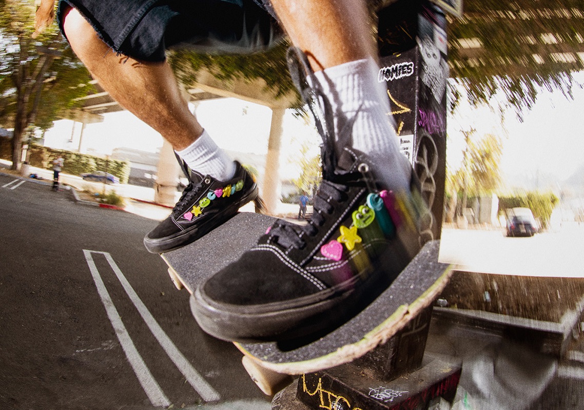 Với phong cách Triple Black, VANS OLD SKOOL vẫn thể hiện một cách tinh tế thương hiệu thiết kế đầy màu sắc của FROG SKATEBOARDS. Sản phầm với đường dập may chỉ trắng càng nổi bật thêm sự tinh tế trên nền tone đen. Đột phá hơn nữa với sự thay thế cách điệu hoàn toàn dải Jazz Stripe bằng Charm nhiều màu sắc, tạo nét riêng cho sự kết hợp FROG SKATEBOARDS x VANS. FROG SKATEBOARDS là nhãn hiệu đặc trưng bởi hình tượng màu sắc gần gũi, nên các Charm đã được thiết kế riêng cho VANS với các hình dạng trái tim, ngôi sao, nốt nhạc, con vật rất đáng yêu và gần gũi.