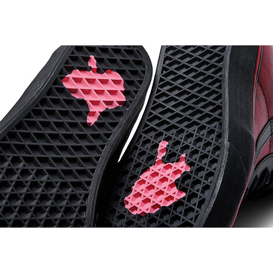 Nhân vật Deadpool được thổi hồn một cách khéo léo trên nền thiết kế SK8 HI kinh điển của VANS. Hai gam màu đỏ-đen được kết hợp hài hoà và được thêm thắt các chi tiết là những đường chém của vũ khí Katana. Trên lưỡi gà được may logo của VANS và MARVEL nhằm đánh dấu cho sự hợp tác đặc biệt này. Đây chắc chắn là đôi giày mà những fan của Deadpool khó lòng bỏ qua, vì vậy hãy nhanh tay lên nhé.
