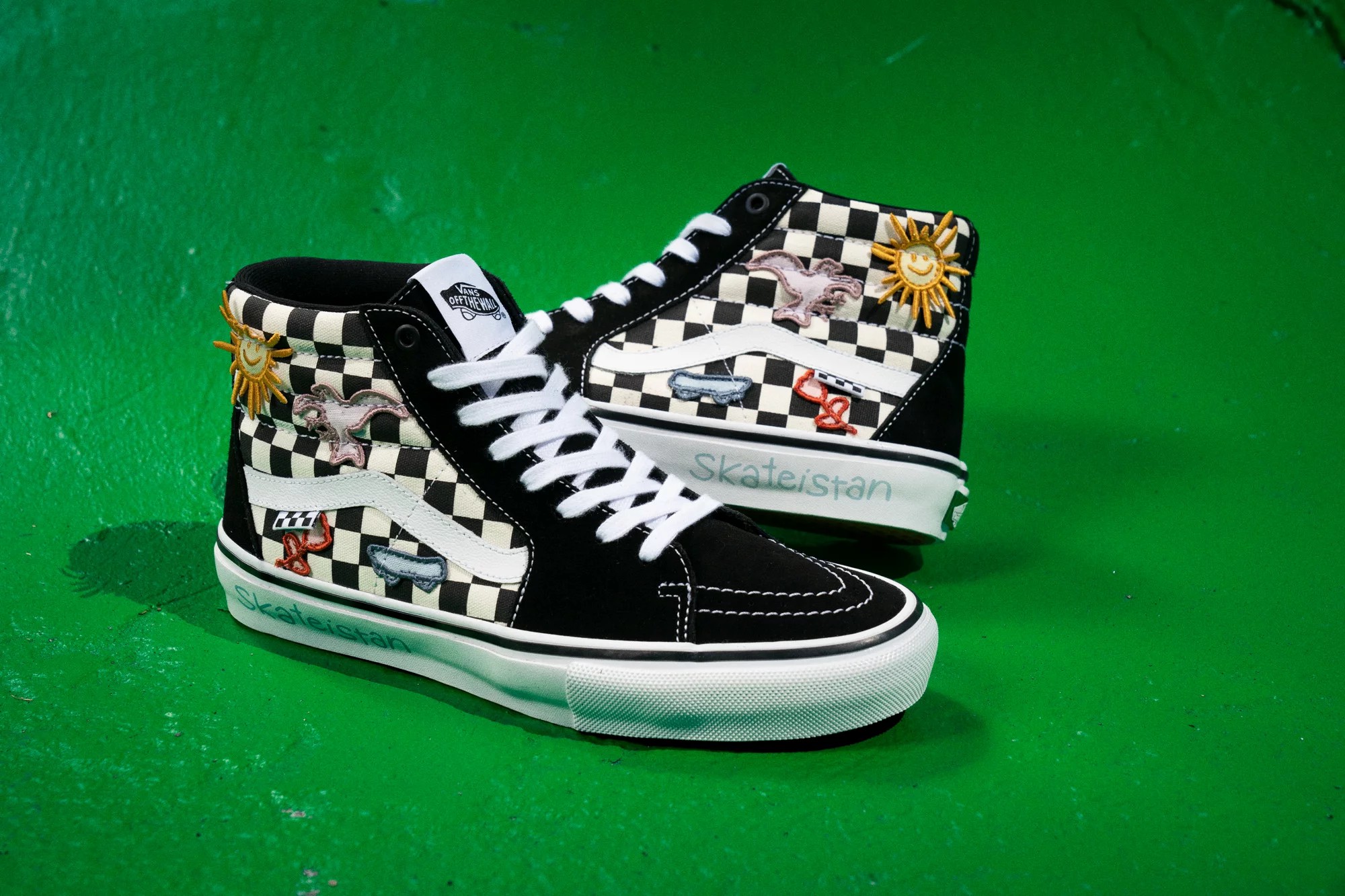 Skate Sk8-Hi dẫn đầu với bản in Checkerboard – họa tiết linh hồn nhà VANS, được kiểu cách tùy chỉnh bởi phong cách của Skateistan lấy cảm hứng từ các yếu tố tự nhiên và tên của tổ chức được in trên đế ngoài. Tiếp nối là kiểu dáng VANS ERA và VANS SLIP-ON, với họa tiết checkerboard và mũ lưỡi trai màu đen được thêu hình mặt trời cười, hoa, chim bồ câu và ván trượt, cùng các tác phẩm nghệ thuật khác.