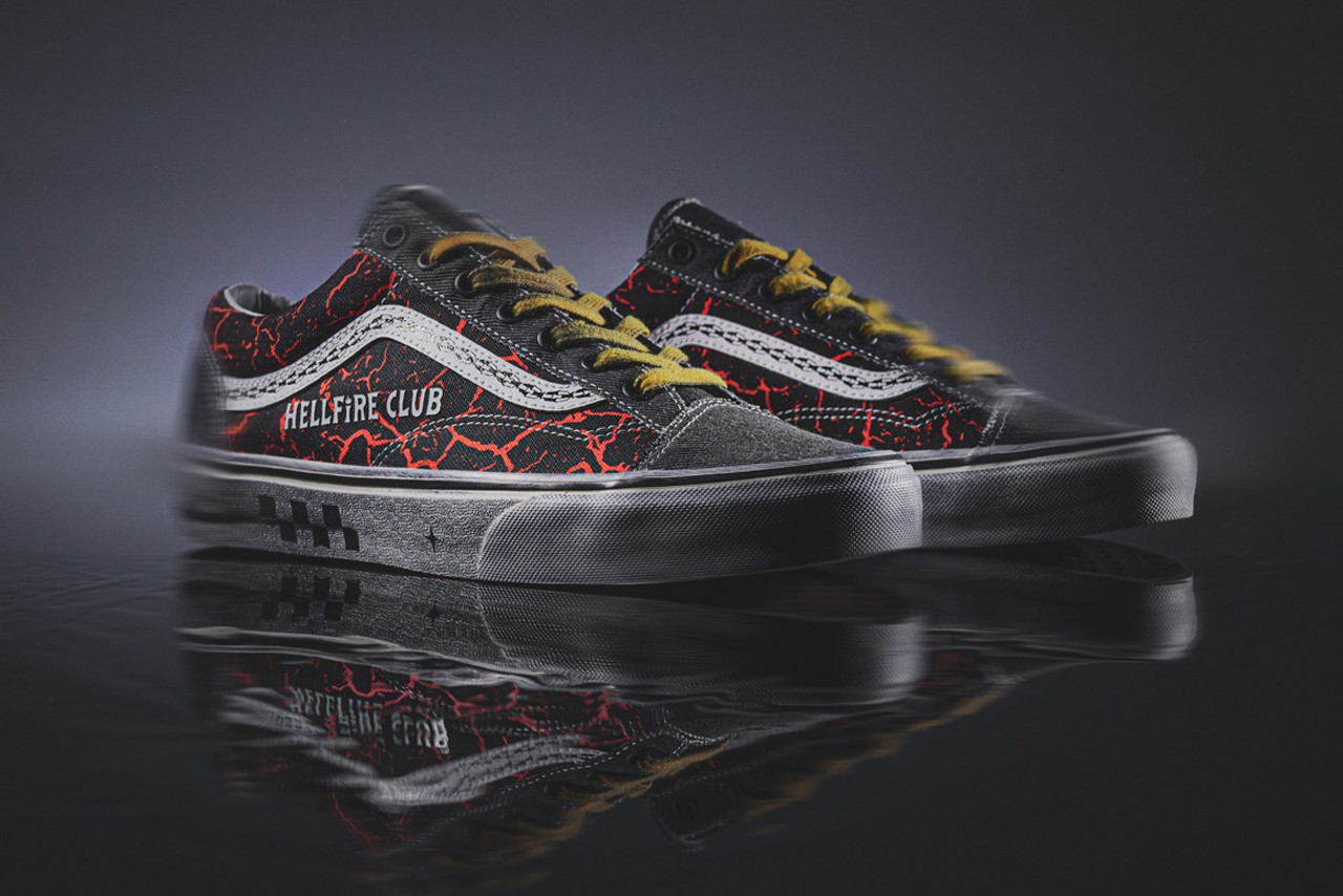 VANS Old Skool “Hellfire Club Style 36” mang đến một ánh nhìn mới mẻ với bản in nứt màu đen và đỏ - màu sắc chủ đạo trong khi được tô điểm bằng đầu lâu, rìu và những ngôi sao từ Dungeons & Dragons. VANS Sk8-Hi Reissue sử dụng mặt trên bằng da lộn, mang màu sắc chủ đạo có phần đen tối và rùng rợn đúng với tính chất của chủ đề. Hình ảnh được khắc họa trên kiểu dáng có thể thấy là hình ảnh Demogorgon phản chiếu và dòng chữ "FRIEND, DON’T LIE" trên đế giữa. Đi song song cùng bộ sưu tập là áo phông mang sự đặc trưng của bộ phim đình đám, thiết kế đã lột tả rất rõ nét các hoạt động và tinh thần kinh dị của bộ phim tạo một cảm giác "rùng rợn" khó tả đối với những fan chân chính nhà "Stranger Things". Những sản phẩm kèm theo hứa hẹn cùng với bộ sưu tập tạo nên một xu hướng không chỉ cho riêng fan của Stranger Things, mà còn đối với những ai yêu cái đẹp và phong cách cá tính.