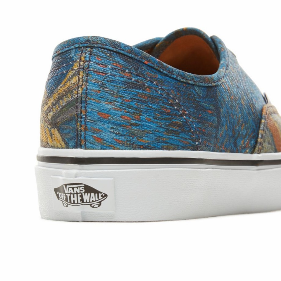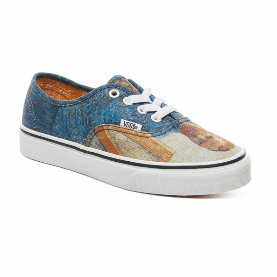 Dựa trên form thiết kế AUTHENTIC quá đỗi quen thuộc, nay đôi giày này được phủ trên mình một trong những bức tranh tự họa của VAN GOGH. Với hình ảnh người đàn ông cùng ánh mắt nhìn thẳng người xem đi cùng bộ tóc và râu màu đỏ như thể hiện sự cương nghị con người của ông, nhưng ẩn sau đôi mắt đó lại là sự mâu thuẫn giữa mạnh mẽ và yếu đuối, thứ đến nay vẫn còn gây nhiều sự tranh cãi về tính cách và con người của VAN GOSH. Các gam màu được VANS thể hiện một cái chính xác và tinh tế với công nghệ in hiện đại, cho ra đời một đôi giày hết sức độc đáo và ấn tượng.