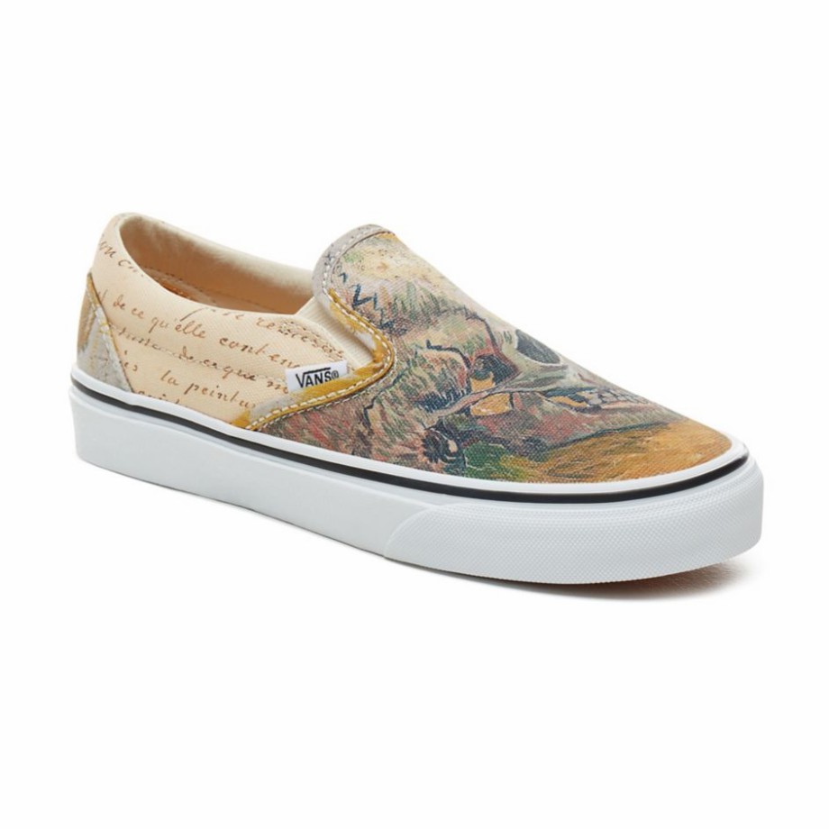 Đôi giày với thiết kế SLIP ON quen thuộc này được lấy cảm hứng từ bức tranh SKULLS. Bức tranh này được vẽ tại Paris vào tháng 5 năm 1887, tuy nhiên có thể dễ dàng nhìn ra những vết nứt trên phần vẽ ở hộp sọ do VAN GOGH đã vẽ nó trên một bức tranh khác rồi che lại bằng sơn kẽm màu trắng - loại sơn cho thời gian khô rất chậm, đây góp phần tạo nên nét độc đáo riêng cho bức tranh này. VANS cũng đã khéo léo và tinh tế khi thể hiện các gam màu một các chính xác với công nghệ in hiện đại để mang đến một đôi giày chất lượng nhất.