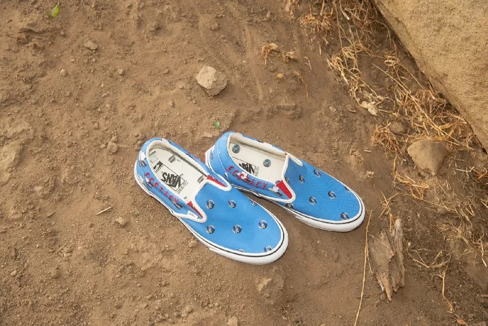 Dòng sản phẩm giày dép VAULT BY VANS bao gồm năm kiểu dáng - Sk8-HI VLT LX, Era VLT LX, Chukka Boot VLT LX, Old Skool VLT LX và Classic Slip-On VLT LX - mỗi đôi giày mô tả một mô hình trái đất và quan tài lặp lại trên mũ vải cotton cao cấp. Mỗi mẫu giày đều bao gồm các từ đối lập được thêu dọc theo cổ áo và gót giày của mỗi mẫu để kích động khái niệm về sự không chắc chắn. Thiết kế Earth and Coffin được lấy cảm hứng từ “nhiều người nắm quyền trên thế giới, những người coi trọng sự giàu có và quyền lực đối với con người và thiên nhiên,” Dewitt nói. "Nếu không được kiểm soát, lòng tham của một số ít sẽ là dấu chấm hết cho tất cả."