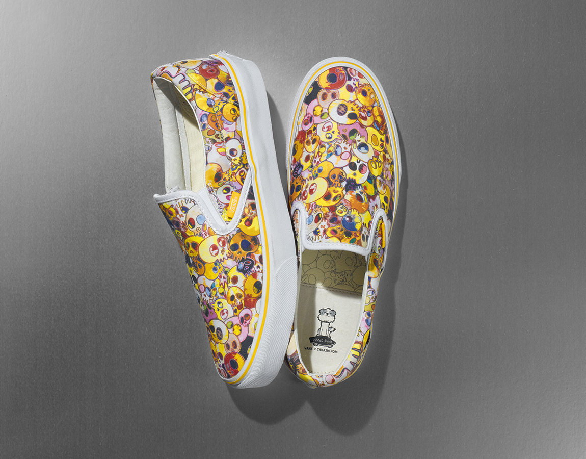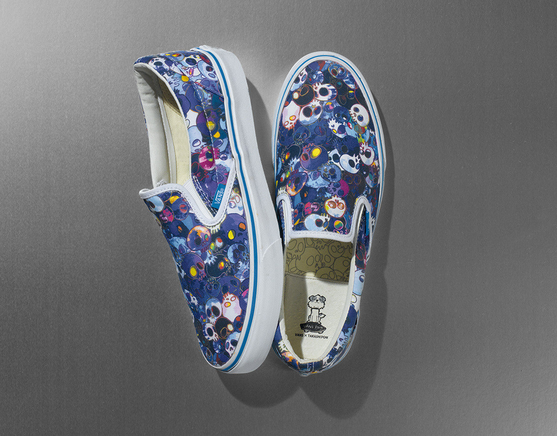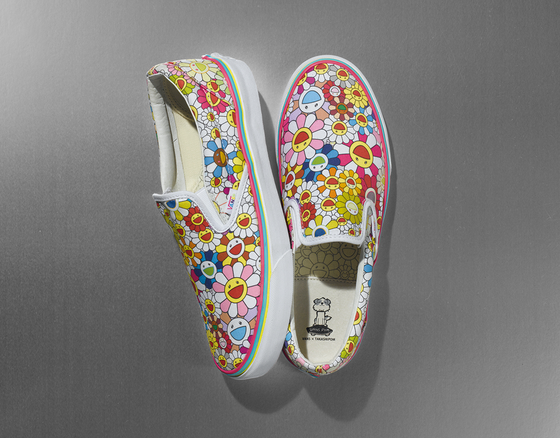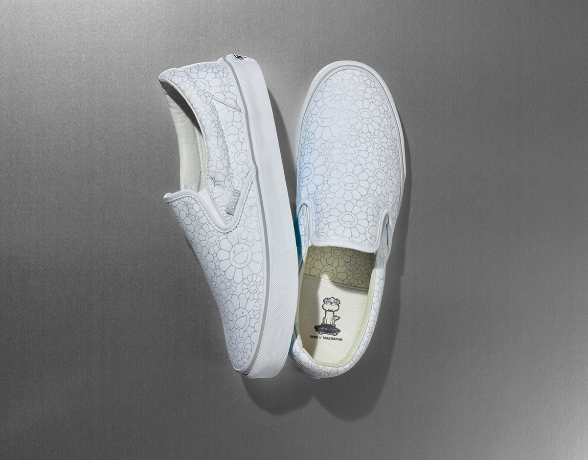 Có những điều vô cùng lạ về người nghệ sĩ này, tuy nhiên những điều đó được thể hiện rất rõ trong những tác phẩm nghệ thuật của ông. Đặc biệt hơn cả, những điều đặc trưng nhất về ông được VAULT BY VANS đón nhận và biến hóa nó thành một sản phẩm giày vô cùng ấn tượng, từ đó, bộ sưu tập VAULT BY VANS x Takashi Murakami ra đời với những đặc trưng riêng biệt mà chỉ có ông mới có. Bộ sưu tập được tập trung thiết kế dựa trên một kiểu dáng cổ điển duy nhất là VANS VAULT SLIP-ON. Đôi giày nổi tiếng bởi sự tiện dụng, và nó cũng là sản phẩm có thể thể hiện rất rõ nội dung những tác phẩm nghệ thuật từ Takashi Murakami.
