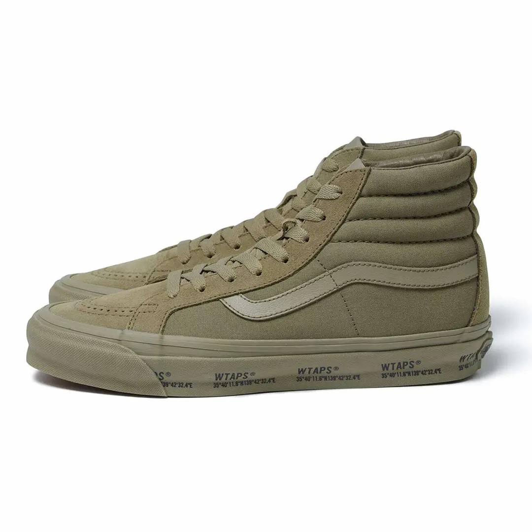 Dòng sản phẩm hợp tác WTAPS x Vans Vault mới nhất tiếp tục niềm đam mê của thương hiệu với trang phục phong cách quân đội. Họ đã lựa chọn các mẫu giày phổ biến từ VANS bao gồm OG Sk8-Hi LX và OG Authentic LX để thực hiện thiết kế. Thông qua tông màu xanh ô liu thể hiện rõ nhất phong cách quân đội, màu sắc được ưu ái phủ toàn bộ phần upper, chạy xuyên suốt thân giày và đế ngoài, thể hiện tính thẩm mỹ quân sự mang tính biểu tượng của WTAPS.